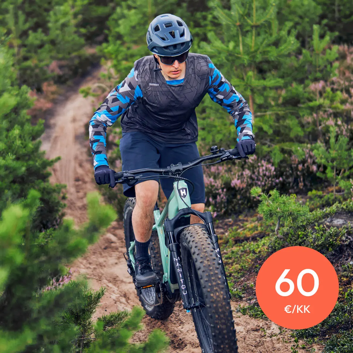 Maastosähköpyörä soveltuu erinomaisesti Suomen vaihteleviin olosuhteisiin ympäri vuoden oli alla sitten kevätsora, syksyn lehdet tai talven pakkaspäivä. Etujousitus pehmentää kuoppia ja juuria ilman, että polkemisteho kärsii, ja pyörä rullaa sujuvasti myös asfaltilla. Valitse maastosähköpyörä, kun haluat sekä kuntoilla maastossa tai metsäpoluilla sekä kulkea vauhdikkaasti arjessa. Valittavissa on myös puhtaasti maastopyöräilyyn tarkoitettu täysjoustoversio.